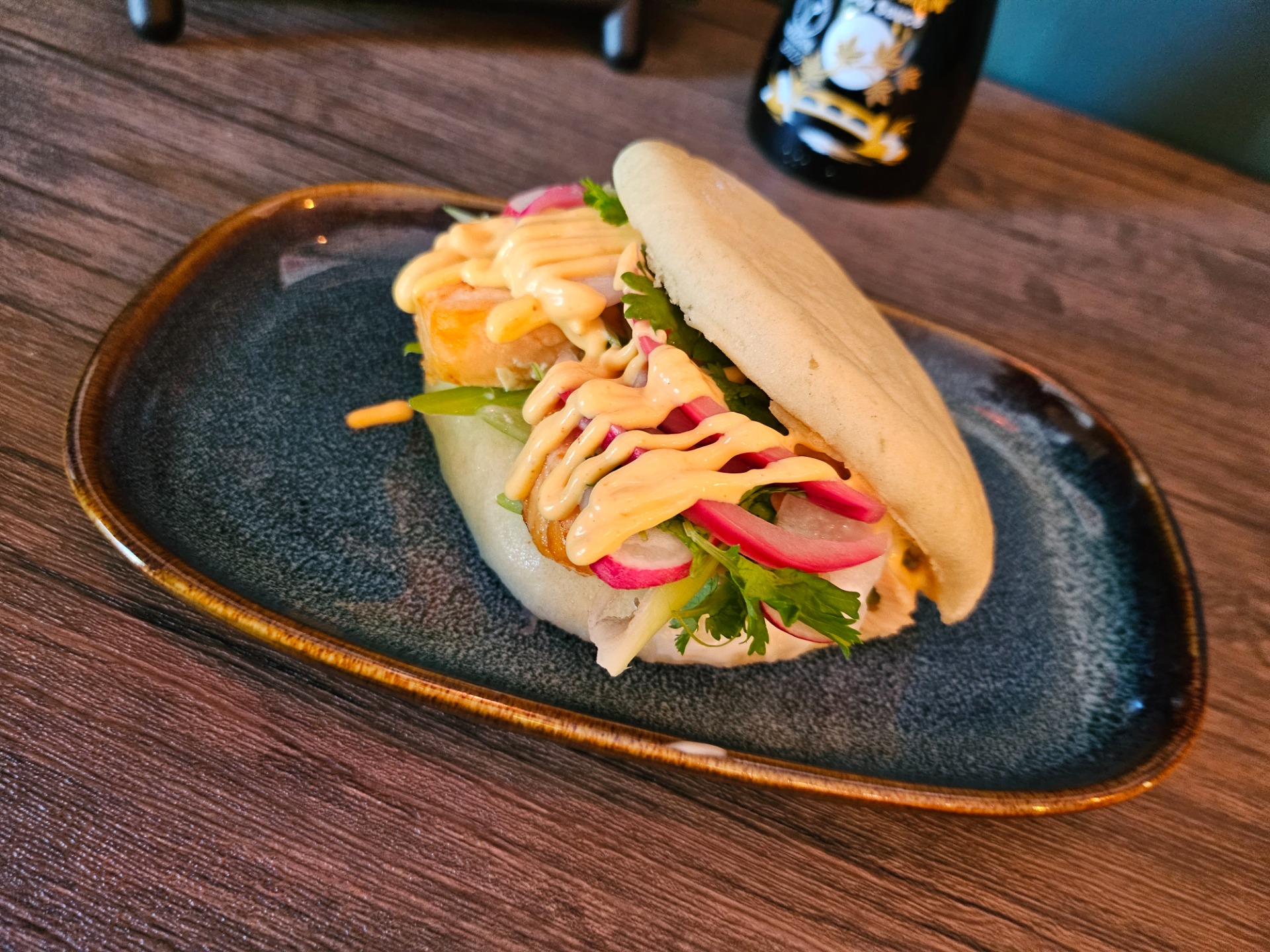 Stora (70 gram bröd) bao buns med härlig fyllning - såser, protein och färska grönsaker.
